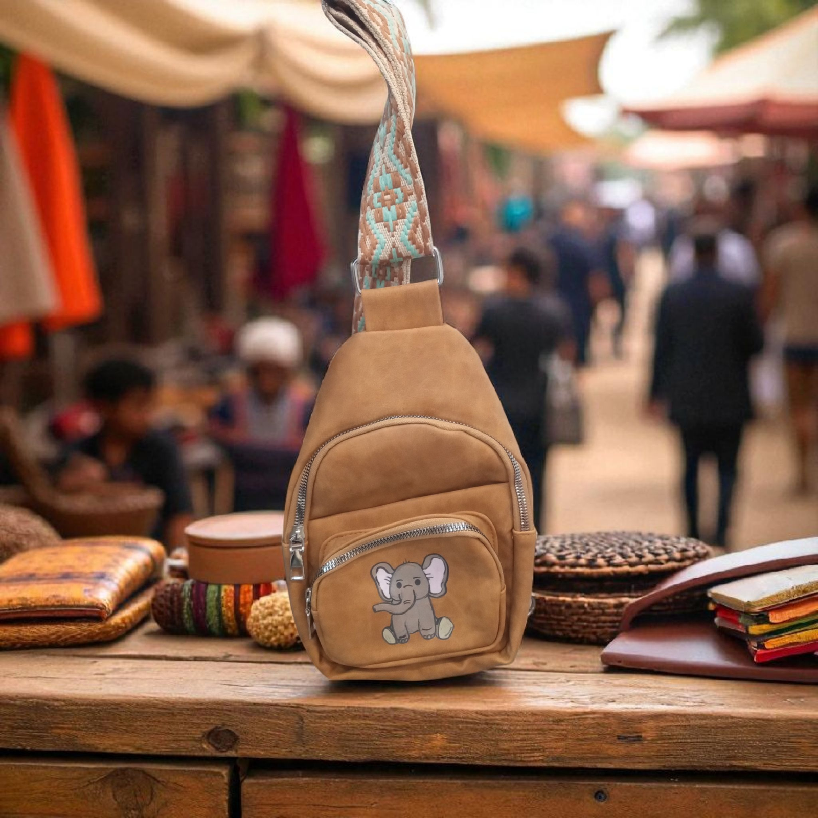 Earthy and meaningful, this brown sling bag by Forge & Fusion features a striking elephant design—symbolizing strength, wisdom, and connection. Crafted with care and built for everyday use, it’s the perfect accessory for those who carry purpose and style on their journey.