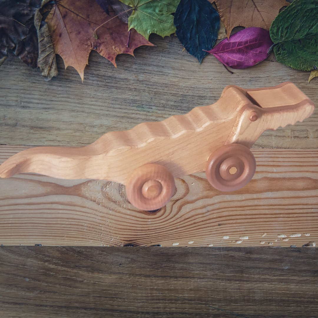 Watch out—here comes the Chomp Along Gator Roller! Handcrafted from eco-friendly wood, this fun roller toy makes the alligator’s mouth snap up and down as it rolls along. Perfect for little hands, it encourages coordination, imaginative play, and hours of giggles. Durable, safe, and full of personality, it’s a must-have for any animal-loving child.