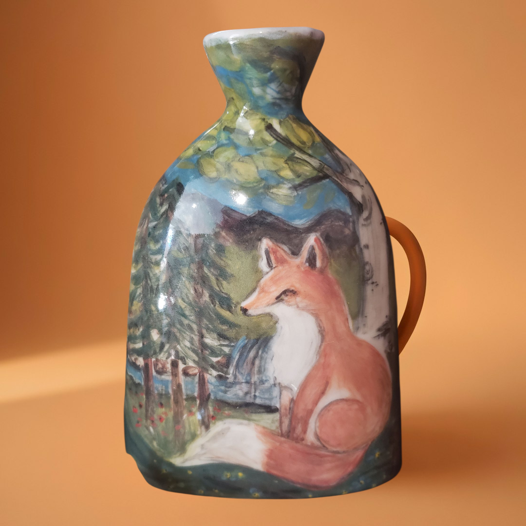 Serve in style with the Fox Ceramic Decanter Set. This handcrafted ceramic set includes a beautifully detailed decanter and two matching cups, each featuring a charming fox motif. Ideal for wine, spirits, or special gatherings, the set combines woodland whimsy with artisan craftsmanship. Every piece is individually handmade, making it a unique and meaningful addition to your home or the perfect gift for nature lovers.