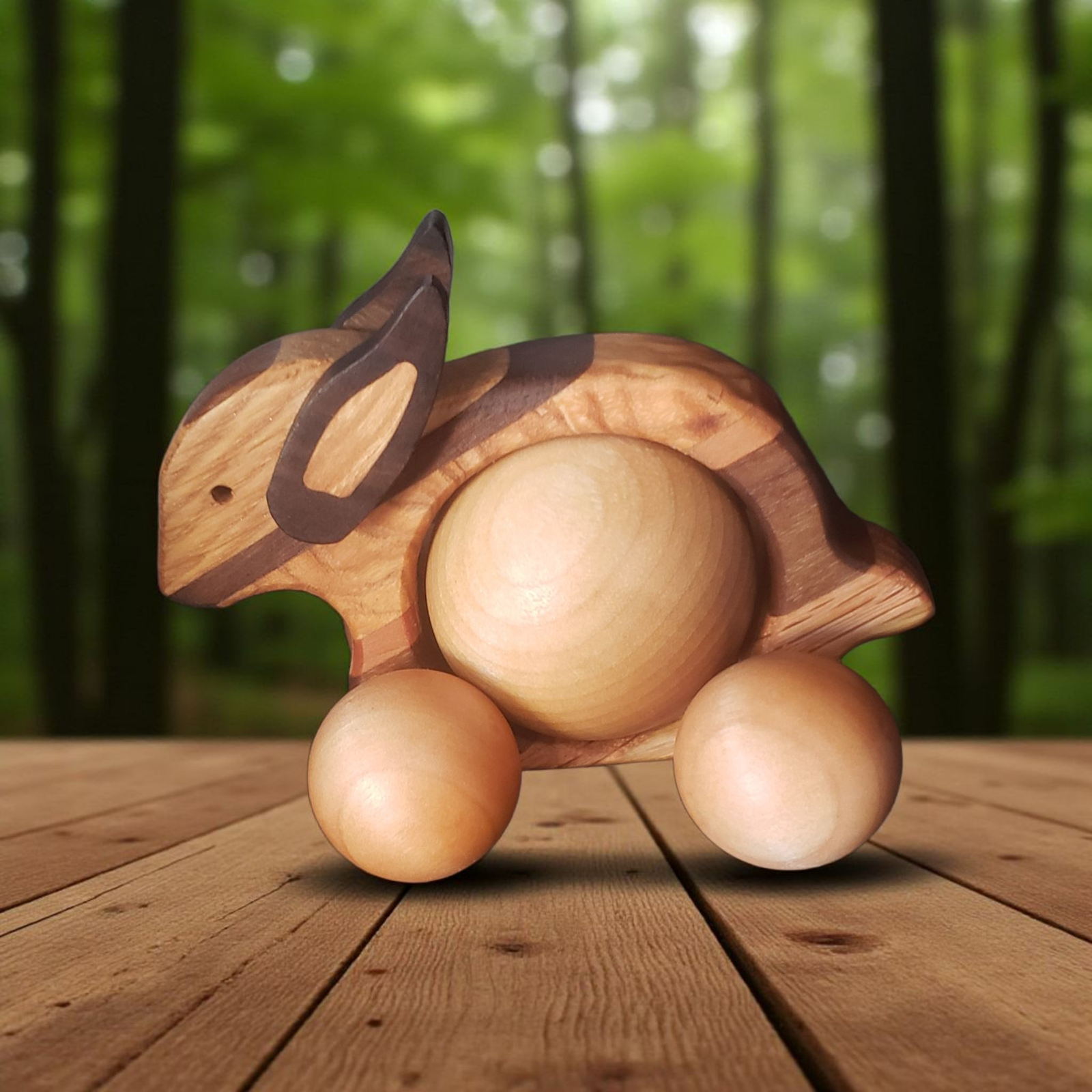 The Hop Along Bunny Roller is ready for endless adventures! Handcrafted from eco-friendly wood, this playful rabbit glides smoothly on its rolling wooden ball. Designed for little hands, it helps develop coordination and sparks imagination. A sweet, durable toy that’s perfect for kids who love animals.